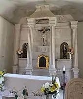 The architecture of the mission is reminiscent of the medieval styles of the country of origin of Retz, with carved stone. The beautiful church doors are flanked by finely decorated obelisk style columns.