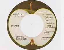 As with the majority of the songs on Living in the Material World,[43] the copyright for "Miss O'Dell" was assigned to the Material World Charitable Foundation.[44] Harrison established the foundation in April 1973,[45] partly to support charitable causes,[46] and as a means to avoid the government and legal interference that had resulted in the withholding of funds raised for the Bangladeshi refugees over 1971–72.[47][48][49]