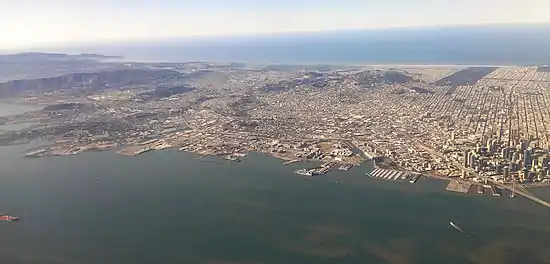 View of San Francisco from the east. Mission Bay is in the lower center.