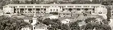 The Film Studio-Fine Arts Building (86,287 ft2[24]) was constructed by 250 workers from many countries who volunteered their services to MRA. At the time it was built, the Studio had the second largest sound stage in the world and the second largest television studio in America. A United Press International reporter claimed that the saga of its building was “the greatest news story of our age.” MRA constructed the Studio to accommodate filming and processing of its movies and television programs. Quantities of materials and technological aid were donated by RCA, Kliegl Brothers Universal Electric Stage Lighting Company, Clancy Stage Rigging, and others. The sound stage (80 ft. x 120 ft.) was poured in one all-night mid-winter session.[15][19]