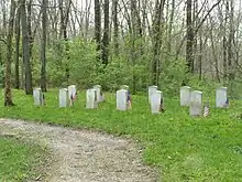 A series of limestone columns known as the "Seven Pillars of the Mississinewa" stands on the north side of the river about three miles (5 km) southeast of Peru in Miami County.[3]