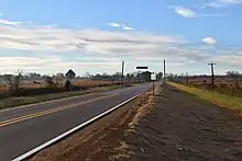 The two routes leave the boundaries of the Holly Springs National Forest, passing through a mix of farmland and woodland with some homes and coming to the community of Ashland. Here, MS 4 splits from MS 5 by turning to the west, and MS 5 becomes Boundary Drive, which runs by businesses and homes. The road intersects the western terminus of MS 370 before it leaves Ashland.[2][1] The route heads into agricultural areas with some woodland and homes, making a turn to the northwest before resuming north.[1] MS 5 comes to its northern terminus at an intersection with US 72 located to the south of Michigan City.[2] MS 5 is legally defined in Mississippi Code § 65-3-3.[3] The entire length of MS 5 is designated a scenic route by Chapter 316, Senate Bill 2547, Laws 1989. While not signed with the blue scenic route shields, it does have the scenic route marker above all shields along the highway, except for the junction with US 72.[4]