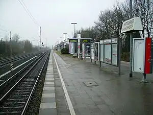 Mittlerer Landweg is a station on the Berlin-Hamburg railway line and served by the trains of Hamburg S-Bahn lines S2 and S21. The station was originally opened in 1842 and is located in the Hamburg district of Billwerder, Germany. Billwerder is part of the Hamburg borough of Bergedorf.