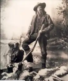 William Henry Perkins, better known as "Moccasin Bill" Perkins (December 24, 1825 – November 13, 1904), was a frontiersman, scout, and hunter.[1] Born in Indiana, he learned to trap and hunt as a child when the area was a wilderness. He continually moved west to Missouri, Kansas, central Colorado, and ultimately the Western Slope of Colorado. During the American Civil War, he was a government scout out of Fort Scott and was injured by Native American arrows. He tried his hand at farming in Kansas, but yearned for the frontier where he was a hunter, trapper, and miner. He was particularly known for his skill as a bear hunter.[2][3] He was a friend of Buffalo Bill (William Frederick Cody).[3]