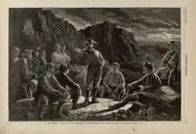 Molly Maguires meeting to discuss strikes in the Pennsylvania coal mines, depicting in an 1874 illustration in Harper's Weekly