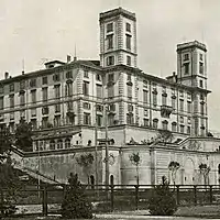 The structure is located in the complex of Villa Pusterla-Crivelli, the eighteenth-century villa built in 1754 by the architect Francesco Croce, who adopted a Medieval architectural style. The hospital, after the expansion in 1878, had different divisions for the patients and a library for doctors and patients which also had cultivable gardens and tailors. The asylum was built according to the ideas of Philippe Pinel and his son Scipion Plein in which he supposed that psychiatric hospitals should be located in small villages in order to achieve better results with the patients.[4] In 1864, the Hospital was surrounded by a wall 3 meters high on all its perimeters of 1997 meters. The complex included also a garden, dedicated to the agricultural activities of the patients. Because of the overcrowding, the hospital was modified again in 1890, with the addition of two more floors to the two existing towers that conferred to the building the semblance of a real castle; some years later a new lighting system was created and installed. In 1911, professor Giuseppe Antonini became the director of the hospital and with him 3 new pavilions, the current Rossi, Ronzoni and Forlanini departments, were added.