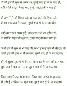 - Woh jō ham mēⁿ tum mēⁿ qarār tḣā; tumhēⁿ yād hō, keh nah yād hō: