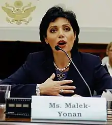Malek-Yonan is an outspoken advocate of issues concerning her people, in particular bringing attention to the Assyrian genocide as well as the plight of today's Assyrians in the Middle-East since the 2003 invasion of Iraq by the United States and its Coalition Forces.[27] She has candidly criticized the U.S. for failure to protect the Christians in Iraq since the beginning of the 2003 Invasion of Iraq.[28] In an interview with The New York Times Malek-Yonan said, "Anytime the Western countries go to war in the Middle East, it becomes a religious war…" In the interview she also held Kurdish commanders in Iraq responsible for "depriving the Christians of security in an effort to tilt the demographics in favor of Kurds. The expected result, she said, was an exodus of hundreds of thousands of Christians from Iraq. At least hundreds have been killed. One priest was quartered and beheaded."[4][29][30]