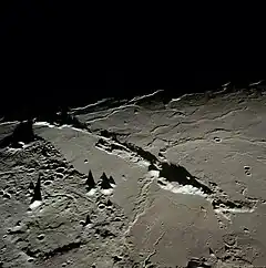 Montes Agricola is an elongated range of mountains near the eastern edge of the central Oceanus Procellarum lunar mare. It lies just to the northwest of a plateau containing the craters Herodotus and Aristarchus.