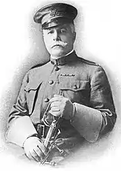 He commanded an artillery sub-post at Ft. Riley from 1906 to 1908 and organized the 6th Field Artillery Regiment, of which he was the first commander.[19] From 1908 to 1910 he served on the Army staff at the War Department and as president of the Field Artillery Examining Board. He was promoted to brigadier general in November, 1910.[20][21]