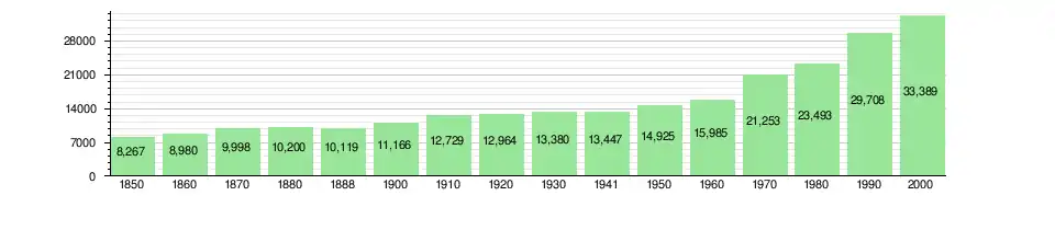 Monthey has a population (as of December 2020) of 47,912.[1] In 2000, most of the population spoke French (29,275 or 87.7%) as their first language; German was the second most common (874 or 2.6%) and Italian was the third (808 or 2.4%). There were 14 people who speak Romansh.[4]