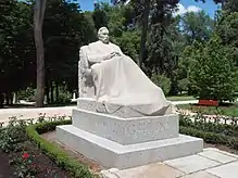 The monument was unveiled during an emotive ceremony on 20 January 1919, attended by Galdós himself.[2] Tomás Borrás Bermejo, Emiliano Ramírez Ángel, Ramón Pérez de Ayala and Enrique de Mesa were among those in attendance.[4] An ageing Galdós (he would die less than a year later)—ill of uremia and nearly completely blind—felt the statue with his fingers and told Macho: "Magnificent, my friend Macho. And he looks so much like me!".[5]