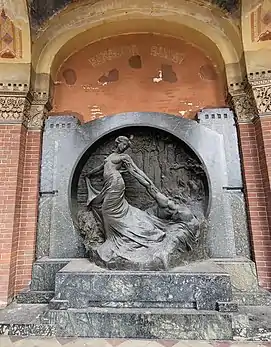 Felice Bialetti (1869–1906) attended the Accademia Albertina in Turin, where he specialized in funerary works. He met and co-elaborated with several famous sculptors, including Odoardo Tabacchi and Enrico Butti. Some of his works are preserved in the Galleria d'Arte Moderna in Milan, including his most famous sculpture, entitled "Pensiero Dominate".[16] The sculptures he created for the Monumental Cemetery of Mortara are: