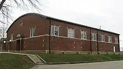 Mooresville Gymnasium, also known as the Newby Gymnasium, is a historic school gymnasium located at Mooresville, Morgan County, Indiana. It was built in 1921, and is a one-story, rectangular, Classical Revival style wood-frame building sheathed in "oriental brick". It measures 100 feet by 75 feet with a basketball floor of 70 feet by 45 feet.[2]: 5
