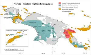 The Morobe – Eastern Highlands languages form a branch of the Trans–New Guinea language family of New Guinea in the classification of Timothy Usher. It unites the Kainantu–Goroka (Eastern Highlands), Finisterre–Huon and Angan (Kratke Range) languages:[1]
