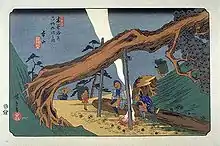 Hiroshige's print of Motoyama-juku, part of the series The Sixty-nine Stations of the Kiso Kaidō
