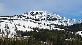 Mount Lincoln is located two miles south of Donner Pass at Sugar Bowl Ski Resort, on land managed by Tahoe National Forest. It is situated on the crest of the Sierra Nevada mountain range, with precipitation runoff from the peak draining to South Yuba River, North Fork American River, and Truckee River. Topographic relief is modest as the summit rises 2,200 feet (670 meters) above Onion Creek in 1.75 mile. Neighbors include Mount Disney, 0.8 miles (1.3 km) to the northwest, Mount Judah one mile (1.6 km) to the northeast, and the nearest higher peak is Anderson Peak, 2.5 miles (4.0 km) to the southeast. The Pacific Crest Trail traverses the east slope of the peak, providing an approach option from Donner Pass.