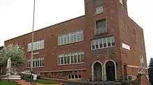 For two years, from 1948 to 1950, work was done on the new building connected to the rectory by the arch. The three-story building was made of flexicore slab and the outside was made from a mixture of new and old bricks in the back and Michigan red sandstone in the front, so that the building was the same color as the buildings to which it was adjoined. The interior of the building was plastered by one of the best plasterers in the area, Dom Graziano, who was the son of a parishioner. He did all of the plastering for free.[46]