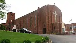 The land had once belonged to Stephen M. Young, who had been a General in the United States Army during the American Civil War and was a friend of Abraham Lincoln.[18] Young sold the property to Frank M. Curtis for $7,000 in 1902. It was sold to David A. Leslie for $17,000 in 1914. After Mr. Leslie's death in August 1938, attorneys spoke to Mrs. Leslie about selling the property and she agreed to sell for $20,000 cash. On December 1, 1938, the congregation made a down payment of $500 cash and few days later, the Building Fund Campaign opened for the new church with a committee of one-hundred volunteers. Each parishioner who was employed full-time should sign a pledge to give $60 over a period of five years towards the building of the church. The committee was split up into groups, and the volunteers went door to door almost every day for five years until enough money was collected.[17]