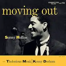 Moving Out is an album by jazz saxophonist Sonny Rollins. This was his second for Prestige Records, featuring Kenny Dorham, Elmo Hope, Percy Heath, and Art Blakey, and one track with Thelonious Monk, Tommy Potter, and Art Taylor.[1] The first 4 tracks had originally appeared on as the 10-inch LP Sonny Rollins Quintet Featuring Kenny Dorham (PrLP 186), and the final track had appeared on the 10-inch LP Sonny Rollins and Thelonious Monk (PrLP 190).[2]