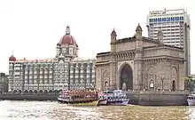 The Gateway of India (foreground) and Taj Mahal Palace Hotel (background).