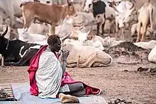 Mundari men sometimes bathe their hair in cow urine; the uric acid gives the hair a red, yellow, or orange color, which they regard as beautiful.[2][3]