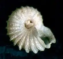 Apertural view of a shell of Munditiella ammonoceras