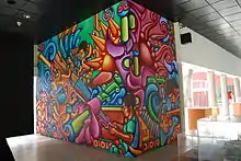 One temporary exhibit was in the fine arts, featuring the work of artist Rosendo Vega. He is originally from Guerrero but has lived in Oaxaca over a decade and his work reflects the Oaxaca worldview according to Carlomagno Pedro Martínez.[13] Some of the museum's temporary exhibits link Oaxaca's crafts with those in the rest of Mexico. In 2010, the museum held an exhibit on marionettes, with samples from parts of Mexico as well as Oaxaca, for a collection of about 30 puppets. The display was created for Children's Month with the cooperation of the marionette performing company called "La bruja."[14] In 2011, the museum sponsored an exhibition called "Extensiones" which was a collection of works by young artists from the neighboring state Puebla, presenting their concept of society.[9]