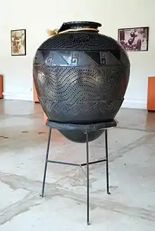 Much later, in the 1990s, there was a push by a local youth organization to establish a museum on the same site dedicated to San Bartolo Coyotepec's barro negro pottery tradition. With the help of an agency called the Consejo Indígena del Pueblo this museum was inaugurated in 1994. It was begun with a donation of items from San Bartolo Coyotepec and other artisans in the Central Valleys region of Oaxaca with academics, intellectuals and others. Later, the museum began to be a center for the sale of pottery and other handcrafts from the same region.[4][11]
