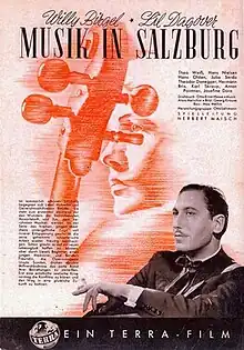 Music in Salzburg (German: Musik in Salzburg) is a 1944 German comedy film directed by Herbert Maisch and starring Willy Birgel, Lil Dagover and Hans Nielsen.[1]It was shot at the Babelsberg Studios in Berlin and on location around Salzburg.[2] The film's sets were designed by the art director Max Mellin.