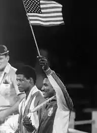 M. Moussa with E. Holyfield, bronze medalists in 1984 OG