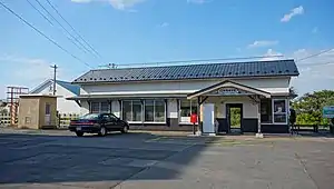 Mutsu-Morita Station (陸奥森田駅, Mutsu-Morita-eki) is a railway station located in the city of Tsugaru, Aomori Prefecture, Japan, operated by the East Japan Railway Company (JR East). The station is a kan'i itaku station, administered by Goshogawara Station, and operated by Tsugaru municipal authority, with point-of-sales terminal installed. Ordinary tickets, express tickets, and reserved-seat tickets for all JR lines are on sale (no connecting tickets).