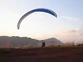 Myōjinyama (明神山) is a grassy area on a mountain ridge in Japan, 20 kilometres (12 mi) east from Mount Fuji and 5 kilometres (3.1 mi) south-east from Lake Yamanaka, off of road 147. The area is suitable for hiking and paragliding.