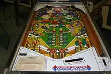 Like other manufacturers, Gottlieb first made mechanical pinball machines, including the first successful coin-operated pinball machine Baffle Ball in 1931.[2] Electromechanical machines were produced starting in 1935. The 1947 development of player-actuated, solenoid-driven 2-inch bats called "flippers" revolutionized the industry, giving players the ability to shoot the ball back up into the playfield for more points. Flippers first appeared on a Gottlieb game called Humpty Dumpty, designed by Harry Mabs. By this time, the games also became noted for their artwork by Roy Parker.