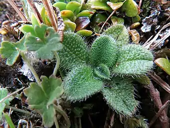 Since then, common usage of the name M. antarctica has largely followed Moore's treatment, and morphologically similar mainland plants have been referred to as M. drucei, M. pygmaea, M. glauca and M. brevis.[5] These species constitute the "pygmy subgroup" of New Zealand Myosotis, and the latest taxonomic revision of this subgroup from 2022 recognizes three species: M. antarctica (with two subspecies), M. brevis, and M. glauca.[5][6] In that treatment, M. antarctica has an expanded circumscription to include plants from Campbell Island and Chile, as well as those from mainland New Zealand previously called M. drucei and M. pygmaea, and two subspecies are recognized.[5][6]