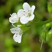 | flowers of Myosotis venosa showing exserted anthers | |