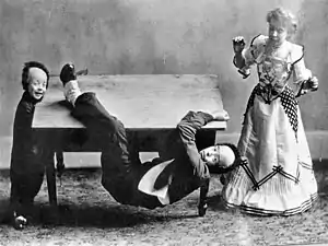 Six-year-old Buster Keaton (left) with his parents Myra (right) and Joe Keaton (middle) during a vaudeville act