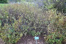 Myrica hartwegii is deciduous shrub that grows 1–2 metres (3.3–6.6 ft) tall with purple-black branches and twigs studded with yellowish resin glands.