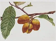 Myristica beddomei leaves and fruits