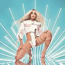 On the cover of the album, Vittar is presented as a "goddess of technology", according to the artist herself. The image is a "modern deity that attracts and unifies rhythms, ideas, cultures and languages of a rich and multifaceted Brazil."[7]