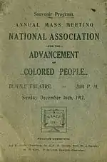 Program cover to the Annual Mass Meeting of the NAACP New Orleans Branch held at the Louisiana Knights of Pythias Temple Theater.