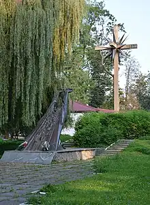 After the Soviet evacuation from Sambir, residents visited the prison on Drohobycka Street. The bodies of prisoners killed in the latter phase of the massacre were discovered in the inner yard. Additionally, six cells filled with corpses were found in the building's basement. In three rooms, the bodies were relatively fresh and stacked to the ceiling, while in the other bricked-up rooms, they were in an advanced state of decomposition.[13] Some bodies might have been taken outside the city by the NKVD.[lower-alpha 2][9] In early August 1941, or shortly after the massacre (accounts vary), approximately 116-118 bodies were accidentally uncovered on the banks of the Dniester.[13][16] A preliminary examination led to their reburial, and the remains were not exhumed until 1991.[20] The identities of those in this grave, whether victims of the prison massacre or of NKVD killings in 1939–1941, remain undetermined.[16]