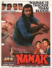 Namak (lit.โ'Salt') is a 1996 Hindi-language action film directed and produced by Kawal Sharma. The film stars Sanjay Dutt and Farah Naaz.[1] The music of the film was composed by Anu Malik. The film was a remake of the 1975 super-hit Pakistani film Pehchan starring Shabnam and Nadeem.[2]