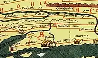 The Roman station Ad Basante from 5th century itinerarium Tabula Peutingeriana.