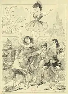 1. Reproduced in Gallica. accessed 9 July 2021. The full caption reads - Namouna, ballet archipelliculaire, par MM. Nuitter et Petipa, orchestration de M. Lalo. Les Pointes, par la diva SANGALLI; - Ballades, par mademoiselle SUBRA; - Parade, par mademoiselle Invernizzi: - Cassonade, par mademoiselle MERCEDES; - Estafilade, par mademoiselle BIOT; - Estocades, par M. MERANTE; - Gambades, par M. VASQUEZ; - Embuscade, par M. PLUQUE; - Promenade, par M. CORNET; - OEillades; par tout le corps de ballet.