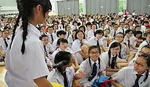 Assembly session in Nan Hua High School. Notice the plaits sported by all the female students