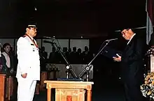 On 22 May 1993, Nuriana was sworn in as the governor of West Java after his election by the provincial council with 68 of 99 votes. At that time, he held the rank of major general.[4] When he ran for reelection in 1998, the Reformasi movement was in full swing, and his candidacy was challenged with sixteen potential gubernatorial candidates (Nuriana included) running for the office.[5][6] Despite this, Nuriana still managed to win reelection with 70 out of 96 votes.[5] He was sworn in for his second term on 8 August 1998.[7]
