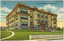 The city gained prominence in the late 19th and early 20th centuries as an active anthracite coal mining community, drawing a large portion of its labor force from European immigrants. At its peak, in the 1930s, the city was home to over 27,000 people. However, when the mining industry in the region collapsed, Nanticoke witnessed urban decay and a shrinking population. The collapse of the mining industry also left behind a scarred landscape – abandoned mines, breakers, buildings, and pollution in Nanticoke Creek due to mine drainage.[9] Concrete City, built by the Delaware, Lackawanna and Western Railroad's coal division in 1911, is located near the Hanover Section of Nanticoke. Abandoned since 1924, it was designated as an historic site in 1998, and its remnants still stand as a tourist attraction. The original entrance has since been bulldozed. However, there is an alternate route that does not appear on maps; it can be found at the end of Bliss & Mosier Streets.[10]