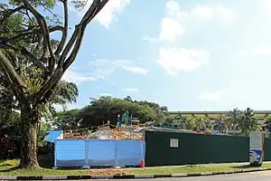 Starting on 31 July 2022, a section of Nanyang Drive had to be temporarily diverted for the station's construction, with two bus stops along the road shifted accordingly. The overhead bridge connecting the Nanyang Technological University (NTU) North Spine and the National Institute of Education (NIE) was demolished on 11 September that year.[8]