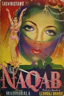 Naqab (lit.'Veil') is a 1955 Indian Hindustani-language fantasy film directed by Lekhraj Bhakhri.[2][3][4] It stars Shammi Kapoor, Madhubala, Ajit and the film revolves around a damsel in distress who receives help from her fiance and his sister.